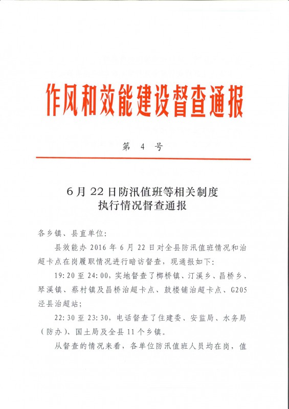 作风和效能建设督查通报(2016年第4期)
